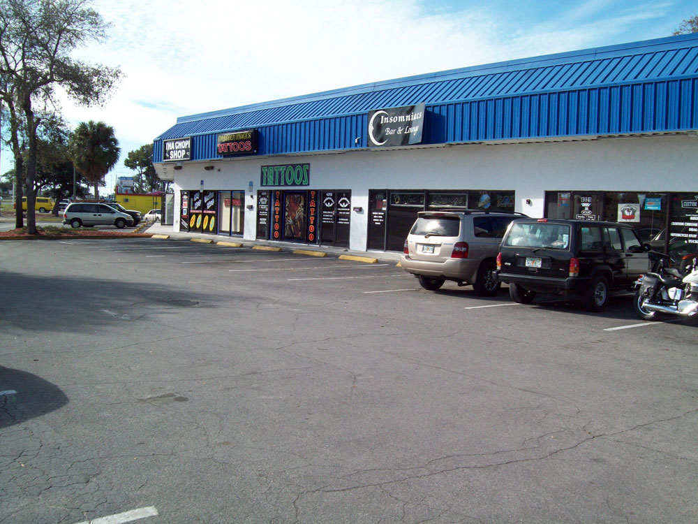 Motorcycle Shop Coffee Shop, Tattoo's, and many more tenants. This is a